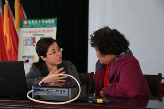 山东红十字会医院的郝云主任与现场育龄妇女进行现场沟通
