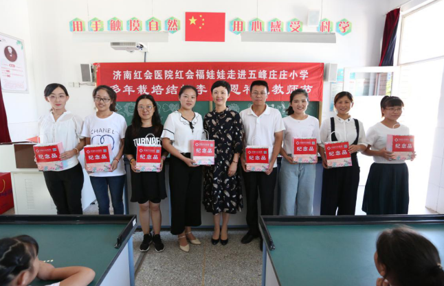 活动接近尾声,学生代表为老师们献上自己亲手制作的贺卡,贺卡上面写满了祝福,一张张贺卡表达了学生们心底对老师深深的爱与感激。济南红绘医院医务工作人员与在校师生合影留念,将感动记录在这一刻,红会医院医务人员为教师赠献礼品,送去祝福,医校文化相互交融,医校情怀源远流长。
