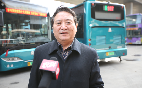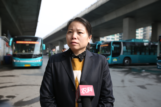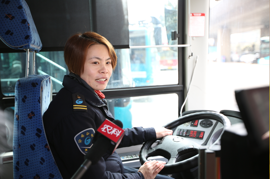 女公交驾驶员代表接受采访。